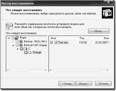 Поскольку был создан архив с этим файлом, даже после внесения изменений в документ я смогу его вернуть в то состояние, в котором он находился на момент последней архивации. Для этого в программе архивации запустим мастер восстановления данных, указываем последний созданный архив, а в нем – файл, который нужно восстановить.