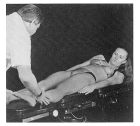 M.psoas и pectoralis тестируются подобно контрлатеральным флексорам плеча и бедра, но этот тест больше подходит для отдельных мышц-флексоров. Пациент лежит навзничь, поднимает свою ногу и контралатеральную руку в положение для тестирования m.psoas major и общей m.pectoralis major. Тестирующее давление приложено тем же самым способом, что и при индивидуальном тестировании m.psoas и m.pectoralis major.
