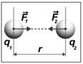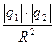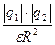 q1 и q2 - заряды; R - расстояние между зарядами;