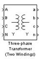 Приклад 3.1 Розрахувати параметри схеми заміщення трифазного двохобмоткового трансформатора марки ТДН-10000/110 для блоку Three-phase Transformer (Two Windings).