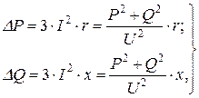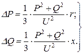 При навантаженні, яке задане активною та реактивною потужністю, втрати потужностей визначаються за формулами: