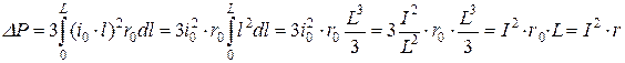 Розглянемо випадок, коли навантаження активне, а переріз лінії постійний уздовж всієї довжини (див. рисунок 4.1). Втрати активної потужності в такій лінії зі струмом навантаження , що протікатиме по ділянці dl з погонним активним опором проводу визначаються [3]: