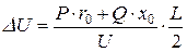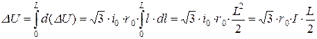 Визначимо втрату напруги в лінії з рівномірно розподіленим навантаженням: