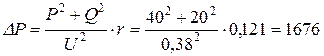 За формулою (4.3) розраховуємо втрати напруги: