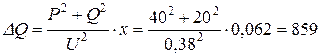 Ом. За формулою (4.1) визначаємо втрати активної та реактивної потужностей в лінії з зосередженим навантаженням: