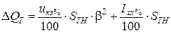 Втрати реактивної потужності в двохобмотковому трансформаторі складаються з втрат на розсіяння в обмотках трансформатора (пропорційні квадрату навантаження) і втрат на намагнічення, які не залежать від величини навантаження: