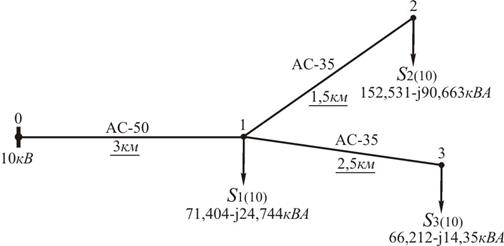 Знаючи погонний активний та реактивний опори проводів можна визначити опори ділянок розподільної мережі напругою 10 кВ.