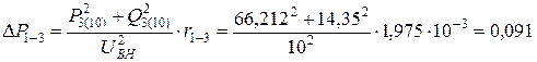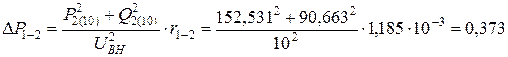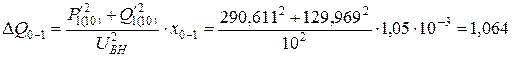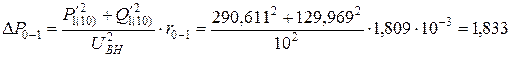 Знайдемо втрати активної та реактивної потужностей на ділянці електричної мережі 0-1:
