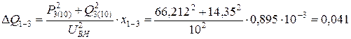 Знайдемо втрати активної та реактивної потужностей на ділянках електричної мережі 1-2 та 1-3:
