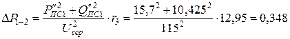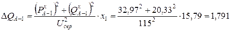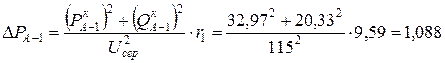 Ця потужність, протікаючи по ділянці , створить в ній втрати потужності: