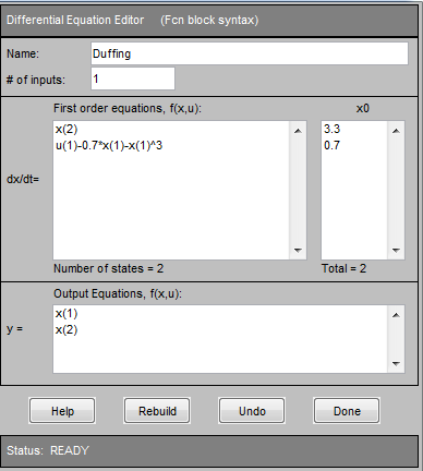 · Output Equations, f(x,u): переменные, значения которых нас интересует.