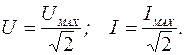 Если напряжение (ток) изменяются строго синусоидально, то между максимальным и действующим значениями существует следующая зависимость: